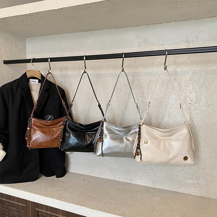 As an experienced leather goods manufacturer, we produce high-quality vintage-style shoulder bags with refined chain accents. This series features soft yet durable leather construction, available in four versatile colors (brown, black, silver, cream) to suit diverse market preferences. Each hobo tote includes practical elements like a spacious main compartment, metal hardware, and adjustable straps. We support full customization—from material and color to logo imprinting and packaging—tailored for bulk orders. Ideal for brands, retailers, and distributors seeking reliable OEM/ODM partnerships with competitive pricing and rapid production turnaround.